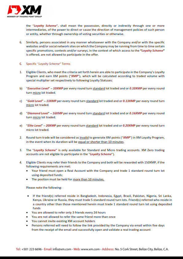 Semua pengguna Akaun Nyata bermula pada peringkat Executive dan dinaiktaraf secara automatik selepas suatu tempoh aktiviti dagangan. Dengan setiap kenaikan status kesetiaan, jumlah XMP (XM Points) yang anda terima untuk setiap lot yang didagangkan meningkat secara berkala. Ini membolehkan anda menerima XMP pada kadar yang lebih cepat. Lebih banyak XMP yang anda terima, lebih banyak ganjaran bonus kredit yang anda boleh tebus.